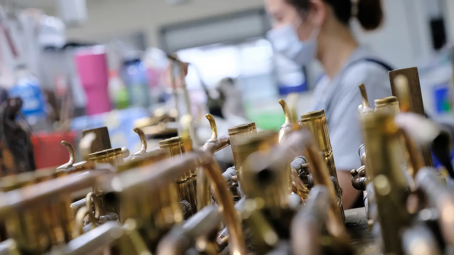 毎分3,600回転のバフ研磨により、楽器の表面を美しく輝く仕上がりへと導きます。