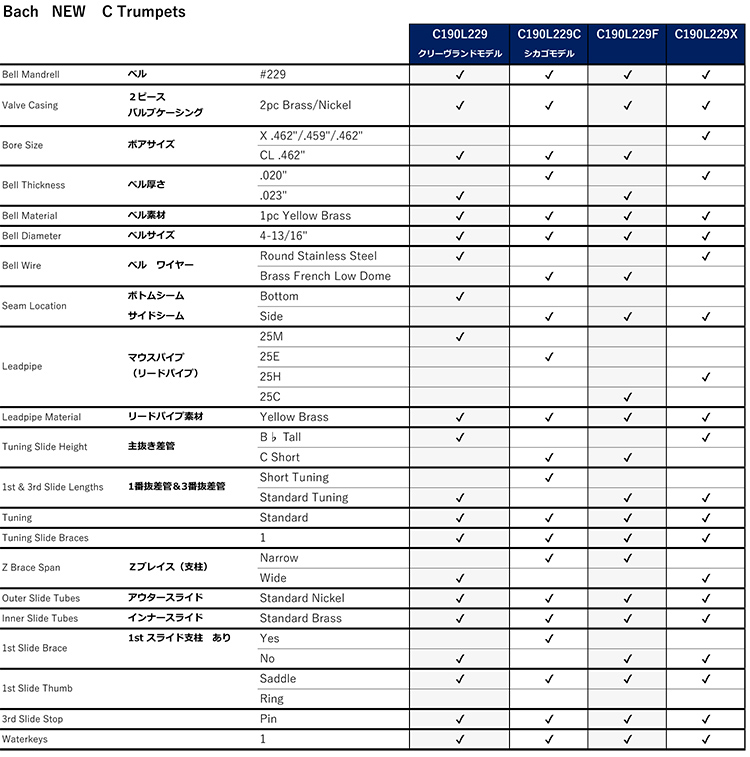 バック C管トランペット「C190 シリーズ」発売のご案内