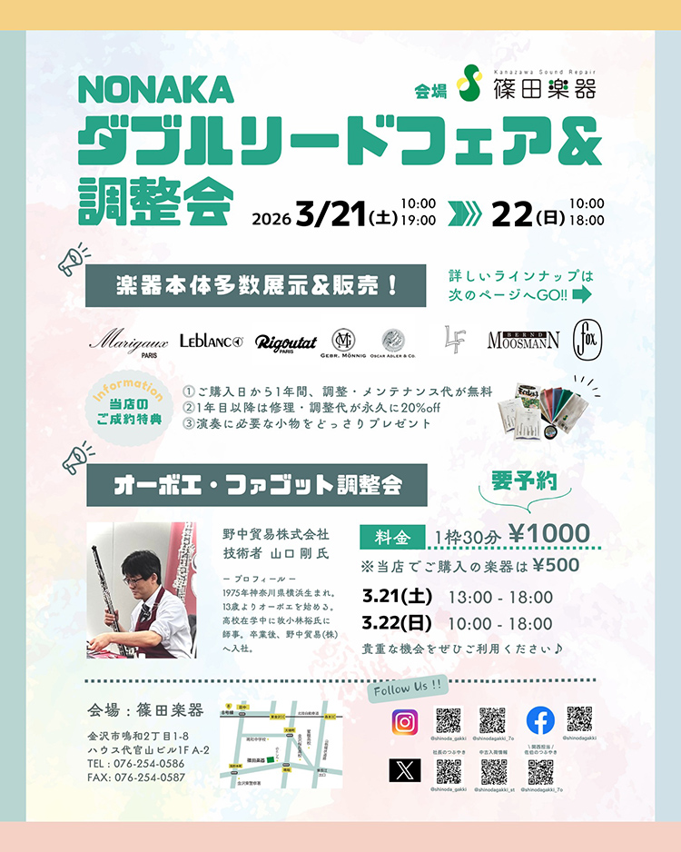 ※場合によって、展示・試奏内容が変更となる可能性もございます。ご了承ください。