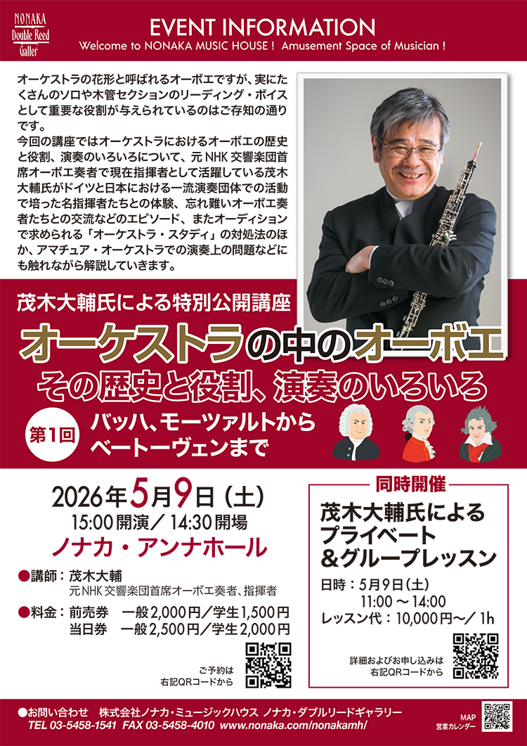 『茂木大輔氏による特別講座 オーケストラの中のオーボエ〜その歴史と役割、演奏のいろいろ〜』