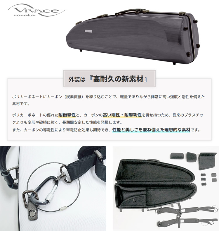 振動や衝撃から楽器をしっかり守るヴィヴァーチェケースが付属。