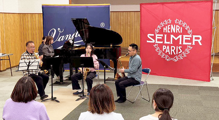 今回はゲスト講師にサクソフォン:竹田歌穂先生とピアノ:AKIマツモト先生をお迎えしての開催。