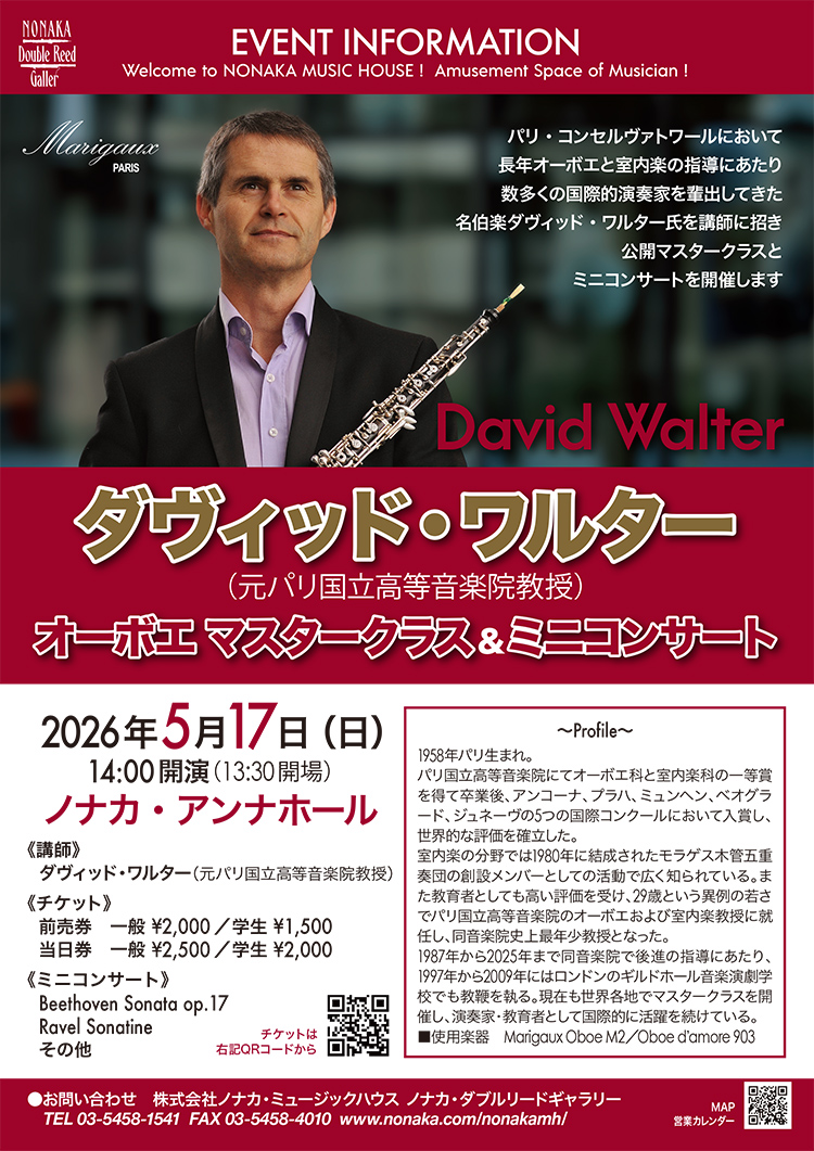 『ダヴィッド・ワルター オーボエマスタークラス&ミニコンサート』