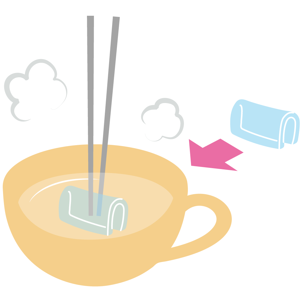 70~80度の湯に本製品を入れ、8~25秒ほど待つとやわらかくなります。
