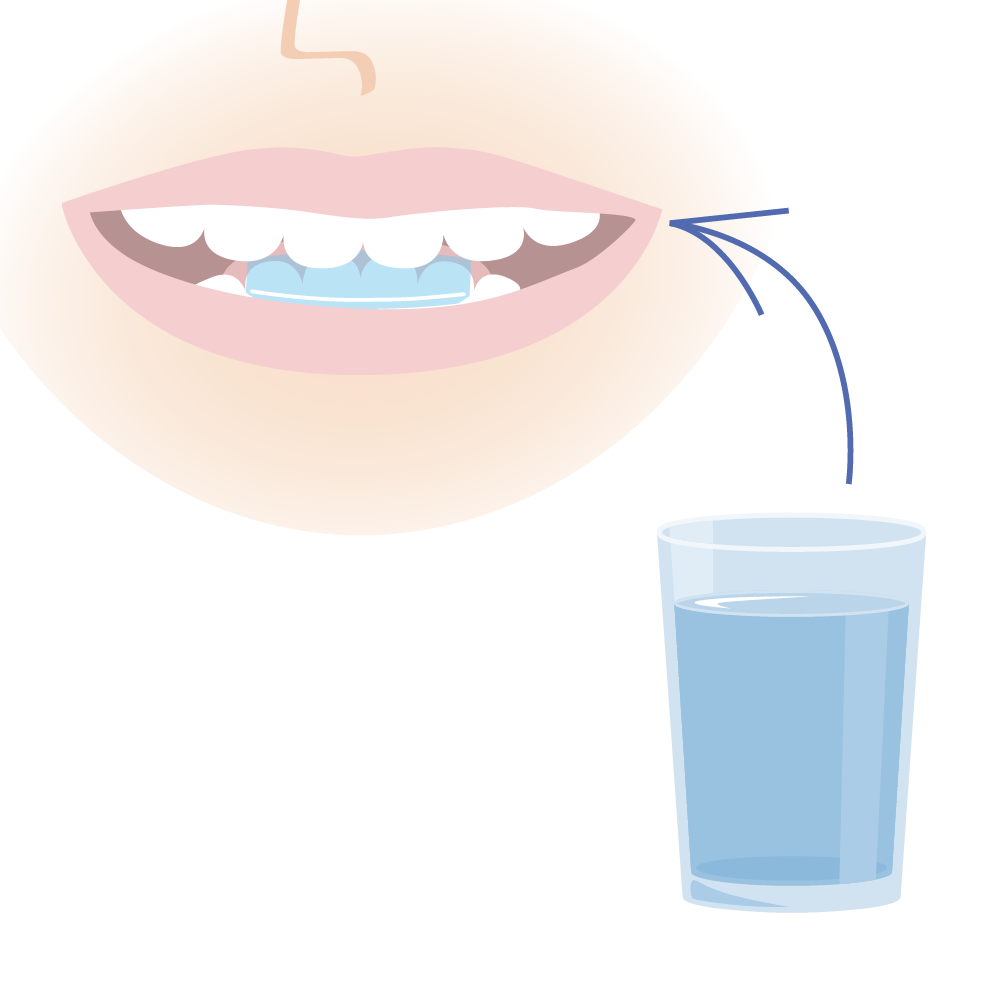 歯型をしっかり付けることができたら、歯に被せたままの状態で口の中に水を含みます。口の中に含んだ水は捨てて、そのまましばらく冷却すると固まります。