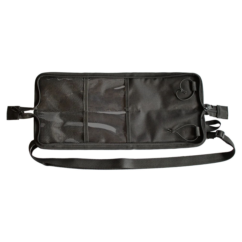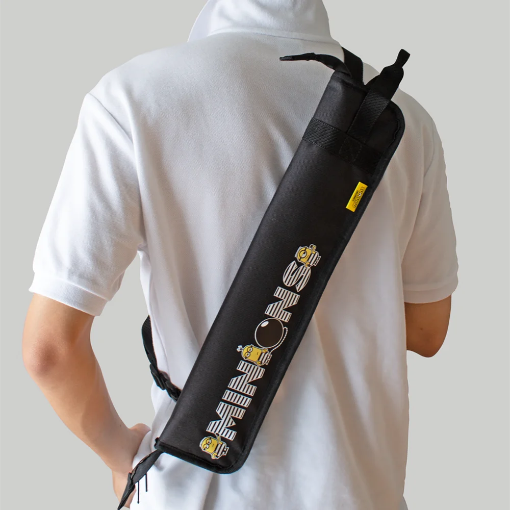2~3ペアが収納可能、コンパクトながら厚みのある中綿生地を採用した丈夫なナイロン製スティックバッグです。ドラムキーなどのアクセサリーを収納できるメッシュタイプのポケット、持ち運びに便利なショルダーストラップ(取り外し可能)付きです。内部のゴムバンドでフロアタムに取り付けることができます。