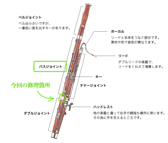今回はファゴットのバスジョイント部分が折れてしまった修理のご紹介です。