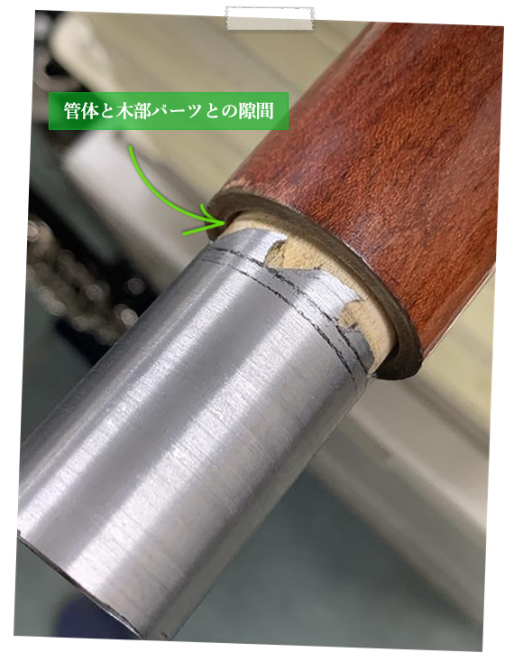 この後、木部にピッタリ合った金属のパーツを取り付ければジョイント部分の完成です。