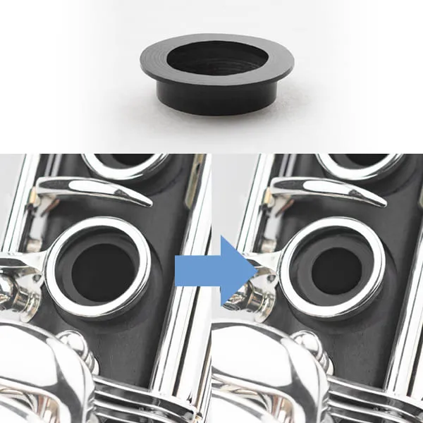 - ビギナーや手の小さな人でも、クラリネットで最も大きなトーンホールを無理なく押さえられるよう、取り外し可能なトーンホールインサートを開発しました。